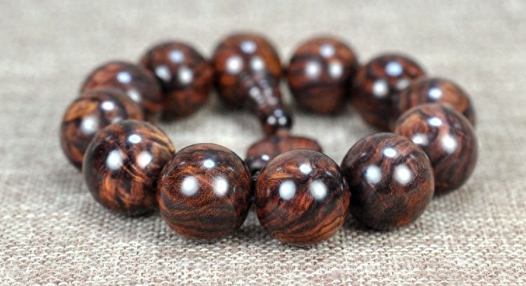 这种鉴别方法需要有一定的经验和眼力,必须由熟悉黄花梨木的收藏家来协助鉴别。通常情况下,优质的黄花梨木手串上可以发现斑点存在。